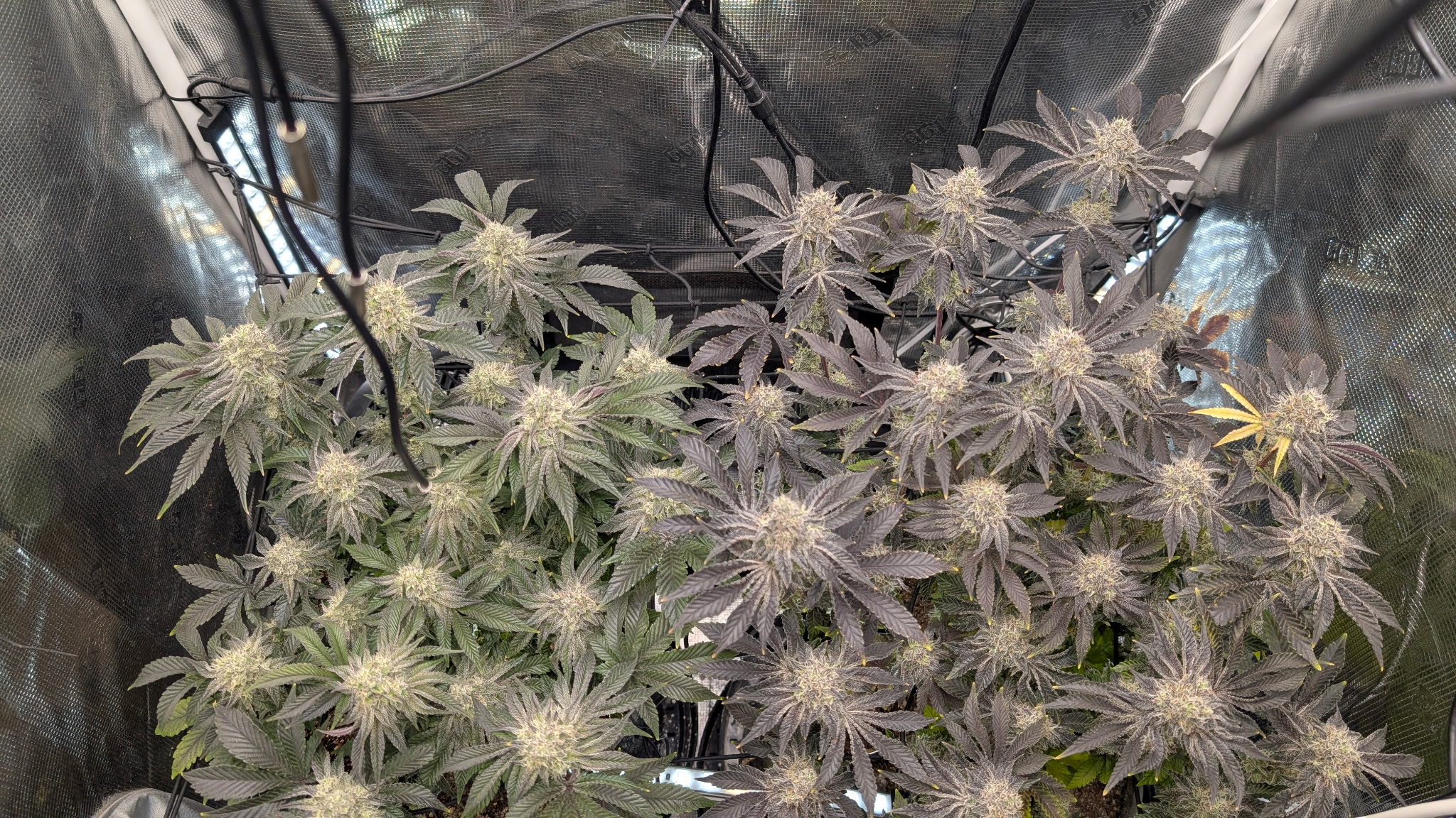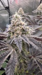 Once flowering commences, the S1 features become apparent. By the third week, the calyxes are covered in a thick layer of resin. As flowering progresses, color expression becomes more pronounced, with deep violets, ruby reds, and even near-black undertones being apparent in cooler temps. This is a significant improvement in consistency compared to the original seed line.